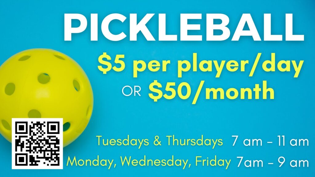 - Open Play: Tuesdays and Thursdays (9 am -11 am)